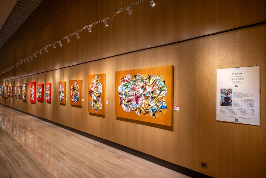 Conrad Manila, in collaboration with the Art Lounge Manila, proudly launches the 40th edition of its celebrated Of Art and Wine series “Creases,” a compelling new exhibition by multidisciplinary artist Meneline Wong, M.D., now on view at Gallery C. Curated by acclaimed art expert Nestor Jardin, the collection features 20 mixed-media works that explore themes of women’s resilience, growth, and the enduring strength shaped from life’s imperfections and experiences.