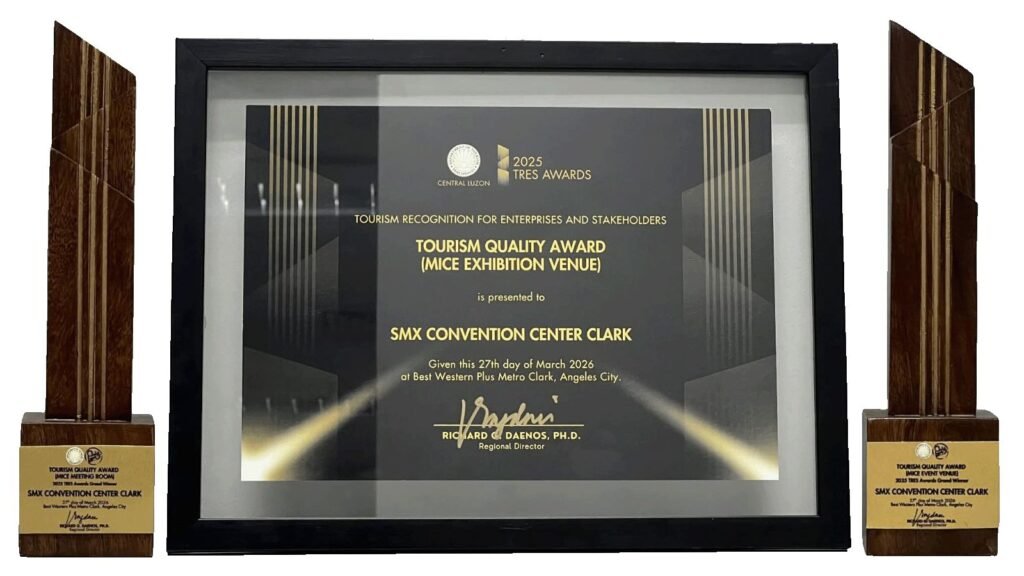 SMX Convention Center Clark, a premiere convention center under the SM Hotels and Conventions Corporation (SMHCC) portfolio, emerged as a top awardee at the Tourism Recognition for Enterprises and Stakeholders (TRES) Awards 2025 organized by the Department of Tourism (DOT) Region 3.