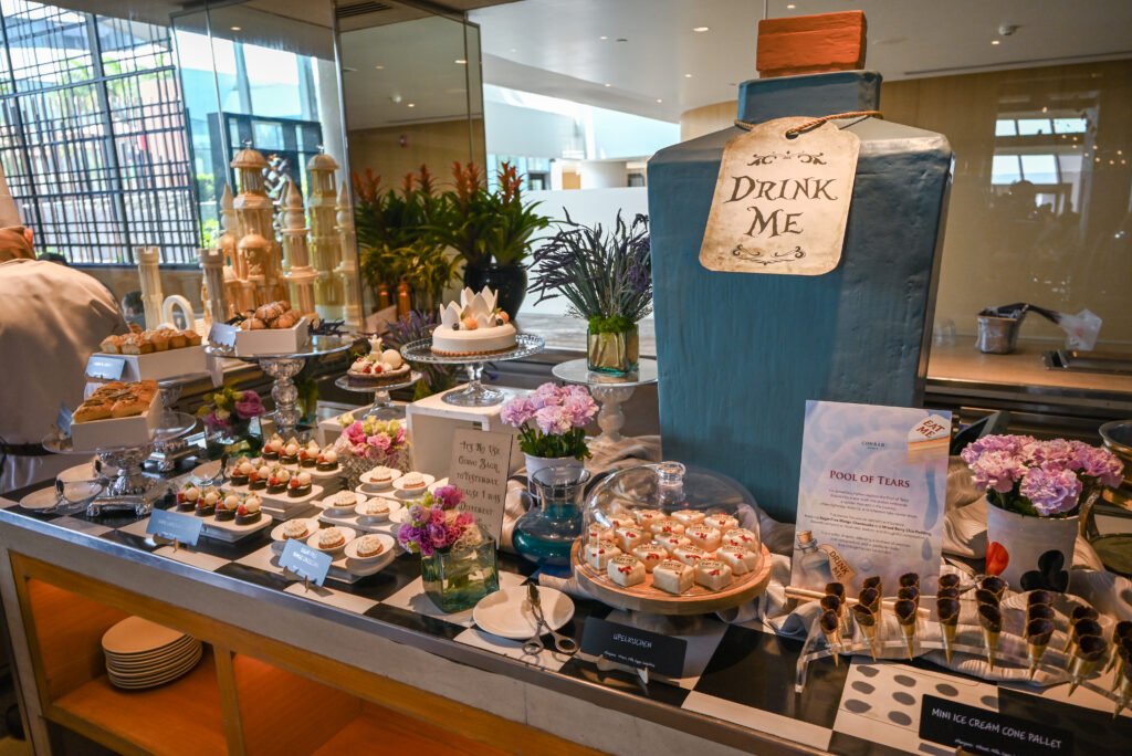 For those seeking lighter options, the Pool of Tears presents thoughtfully composed desserts such as sugar-free mango cheesecake and mixed berry chia pudding. At this chapter, guests can also try “Drink Me” flavored shooters and “Eat Me” chiffon cakes.