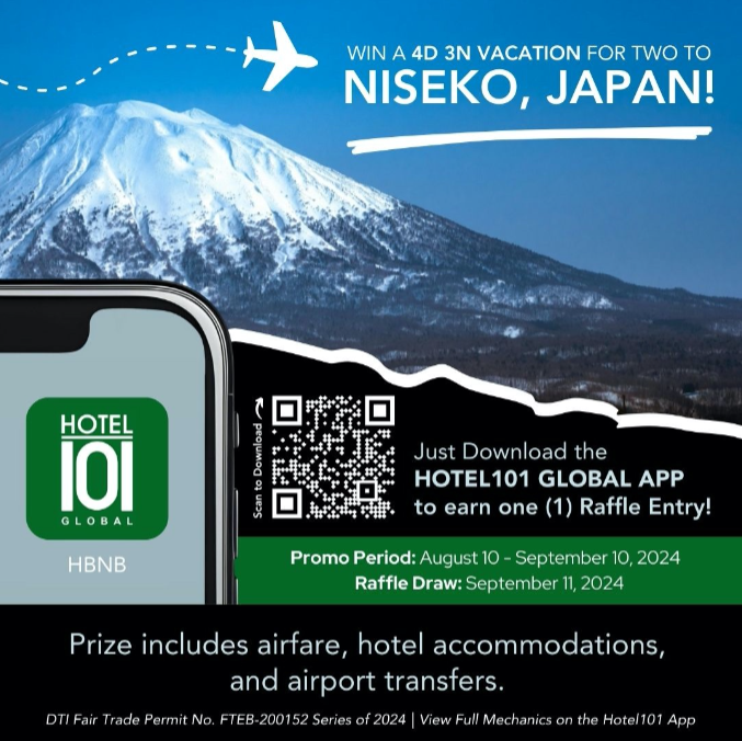 Follow Hotel101 Global on Facebook, Instagram and X. Visit www.hotel101.com to book best available rates at Hotel101-Manila and Hotel101-Fort. This promo is per DTI Fair Trade Permit No. FTEB-200152 Series of 2024. #Hotel101AppBringsYouToNiseko
