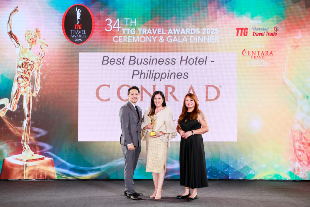 For one, SM Hotels’ luxury brand Conrad Manila has been named Best Business Hotel–Philippines. This marks the third time the hotel has received this distinguished award, recognizing its outstanding meeting facilities, world-class venues, heartfelt service, and unwavering dedication to innovation and excellence in the MICE (Meetings, Incentives, Conferences, and Exhibitions) industry. Joanne Gomez, Commercial Director of Conrad Manila, represented the hotel at the awards ceremony. “We are deeply grateful to the travel agents who recognized Conrad Manila as the Best Business Hotel in the Philippines. Your continued trust and partnership inspire us to continually raise the bar in delivering intuitive service and seamless experiences,” Gomez shared.