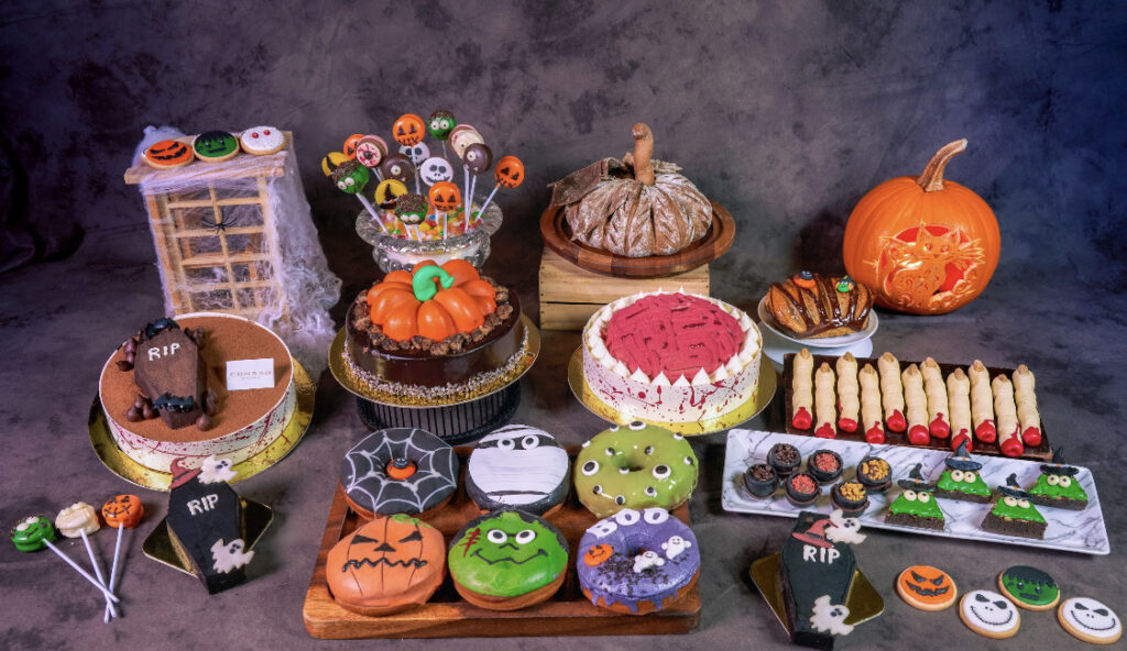 Celebrate the season with wickedly delectable confections at Bru Coffee Bar. Inspired by Halloween’s playful spirit, the themed selection includes dark moist chocolate pumpkin cake, raspberry almond crumble coffin cake, Halloween assorted cookies, Halloween chocolate croissant, Halloween doughnut wall, Halloween lollipop, and more delightful treats. Each treat promises a sweet and spooky indulgence, perfect for sharing with loved ones.