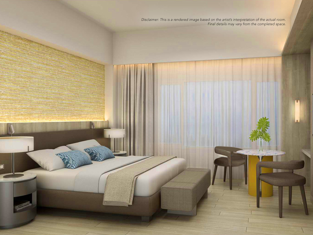 Artist’s perspective rendered photo: A refined look of the Deluxe King rooms.